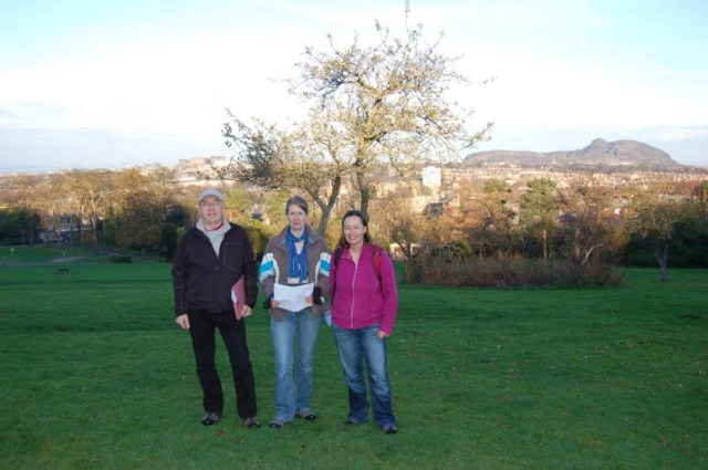 Here is Alice, Graham and Tana – our Woodland and Wildlife Liase – on the orchard, standing against that stunning view.