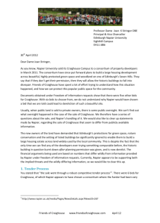 On Monday, the Friends of Craighouse sent a letter to Dame Professor Joan Stringer, Principal of Napier University, with 8 pages of detailed questions about the sale of Craighouse and about statements that Napier have made since the sale. You can download the letter by clicking on the image to the right.